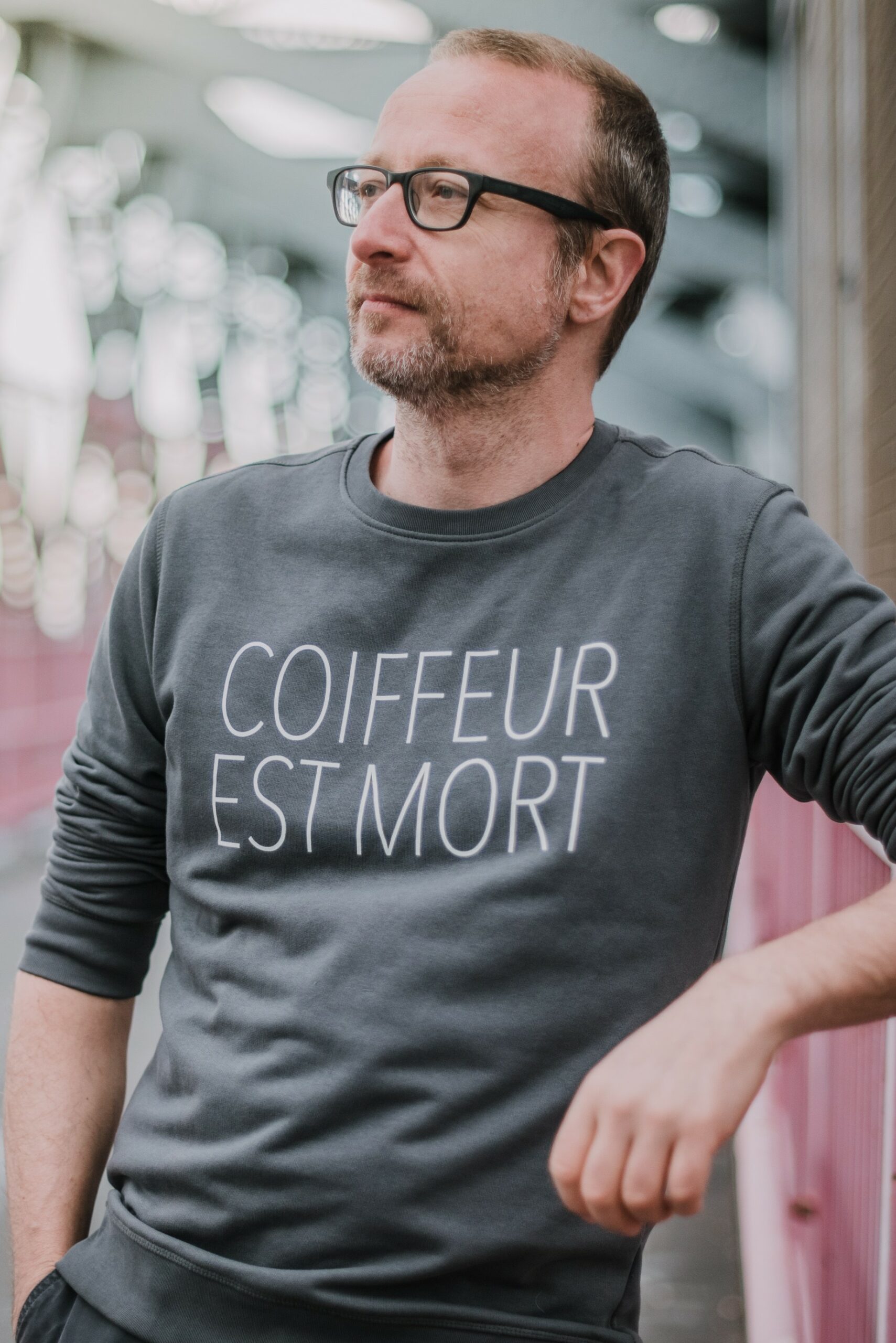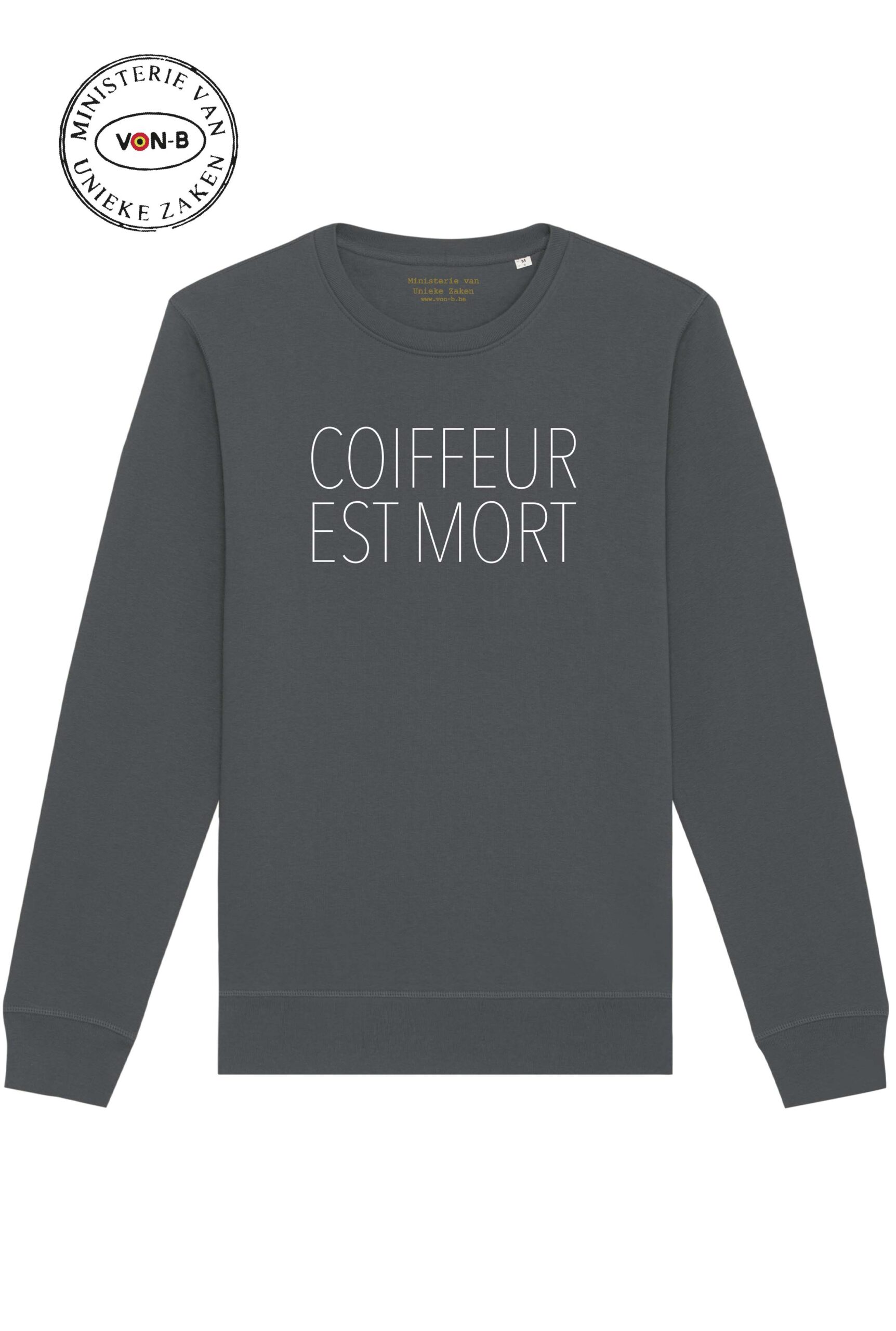 Sweater unisex – Antraciet – Coiffeur est mort